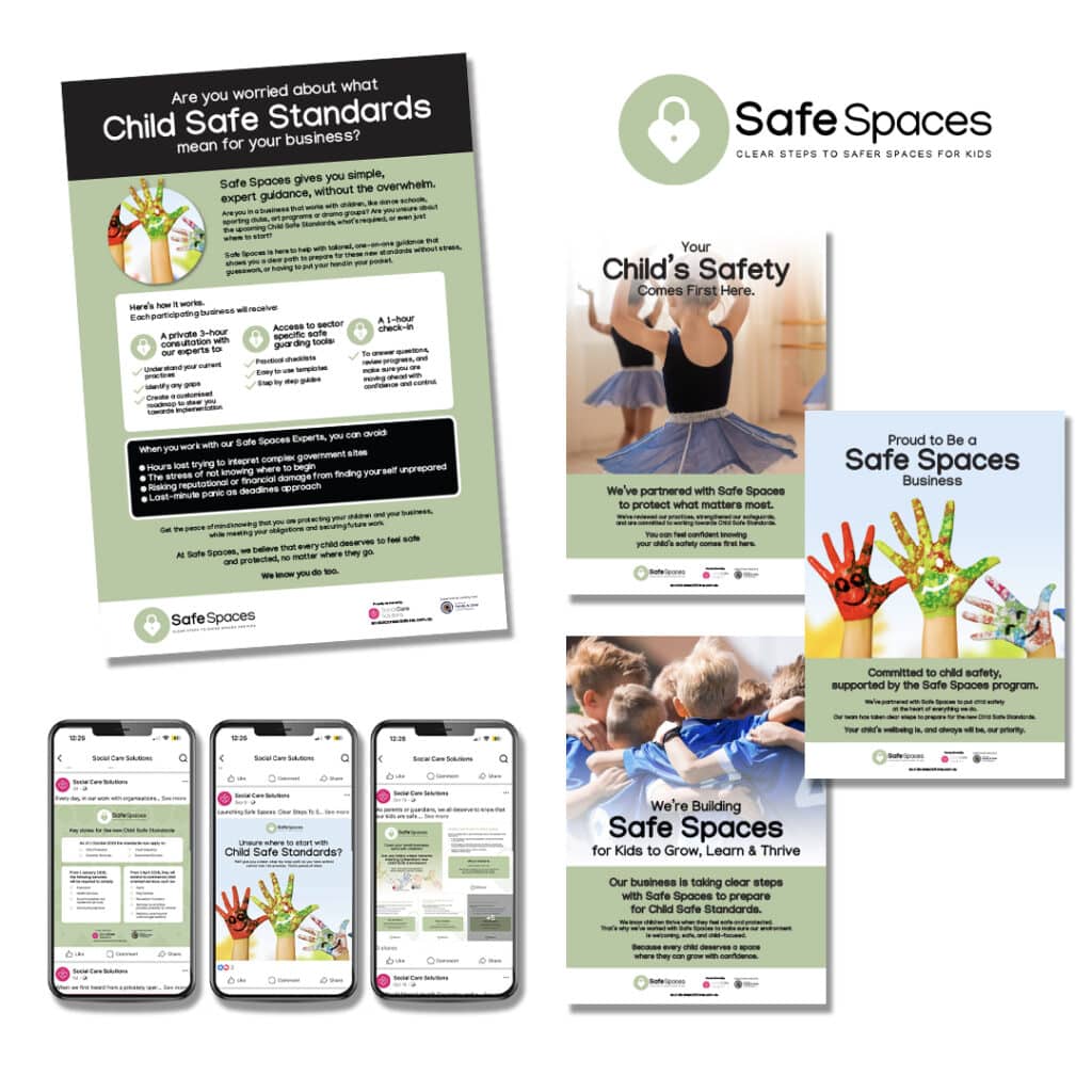 WhiteSpace Marketing worked with Social Care Solutions to develop a marketing strategy for Safe Spaces, a clear, practical and positive brand for a program that helps small businesses confidently meet Queensland’s new Child Safe Standards, delivered by Social Care Solutions.
